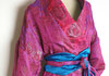 Kimono tissu brocart reflet fushia bleu avec sa ce