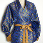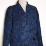 dans un tissu motif baroque (blanc cassé/bleu foncé)